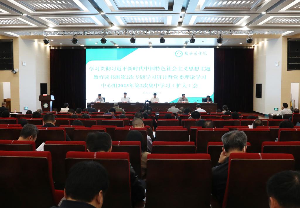 5月12日,我校学习贯彻习近平新时代中国特色社会主义思想主题教育读书班第2次专题学习研讨暨党委理论学习中心组2023年第2次集中学习(扩大)会在临桂校区教学北楼多功能报告厅举行。在家校领导张志勇、马献力、谢忠文、李清华、周国增,全体中层干部、教师代表参加会议。会议由学校党委书记、院长、党委主题教育领导小组组长张志勇主持。