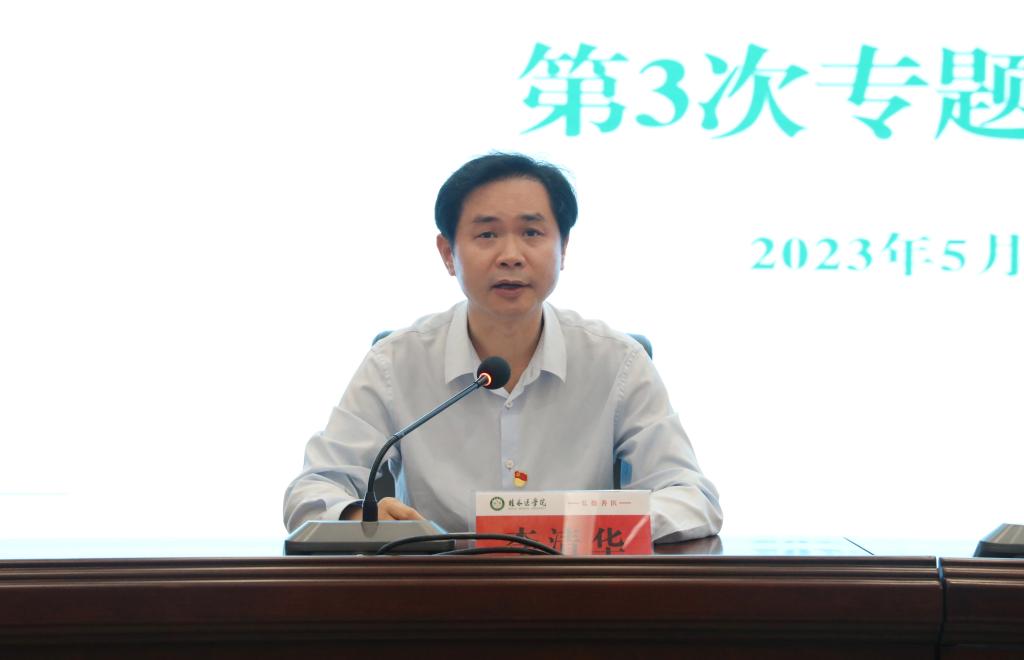 5月16日,我校举行学习贯彻习近平新时代中国特色社会主义思想主题教育读书班第3次专题学习研讨。当天上午,在家校领导张志勇、王赣华、李清华、周国增,全体中层干部在临桂校区教学北楼多功能报告厅召开读书班集中学习研讨会,会议的主题是:深入学习习近平总书记关于教育的重要论述,深入贯彻教育、科技、人才工作“三位一体”战略,加快医学教育创新发展,提升医学人才培养质量。学校党委书记、院长、党委主题教育领导小组组长张志勇主持会议并讲话。会上还集体学习观看了专题辅导视频《推进教育、科技、人才深度融合》。