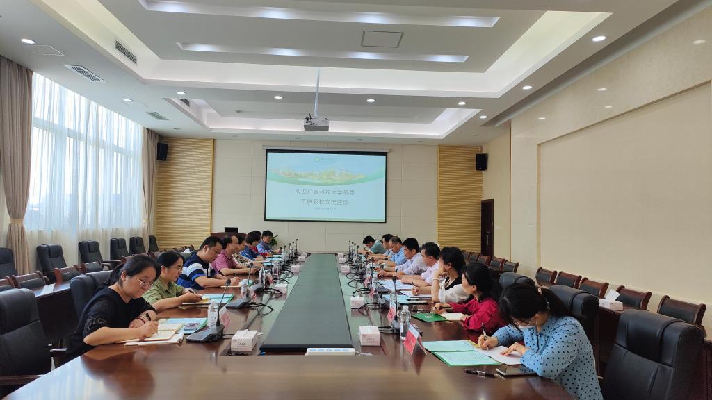 5月17日下午,广西科技大学总会计师韦锦义一行8人到校进行交流座谈,我校党委常委、总会计师周国增出席交流座谈会,财务处、国有资产管理处负责人及相关人员参加会议。