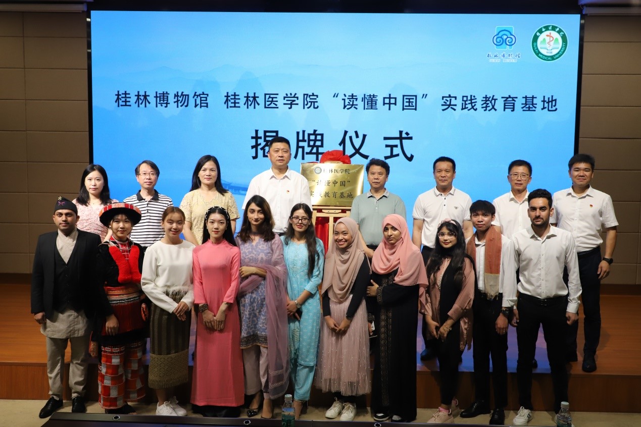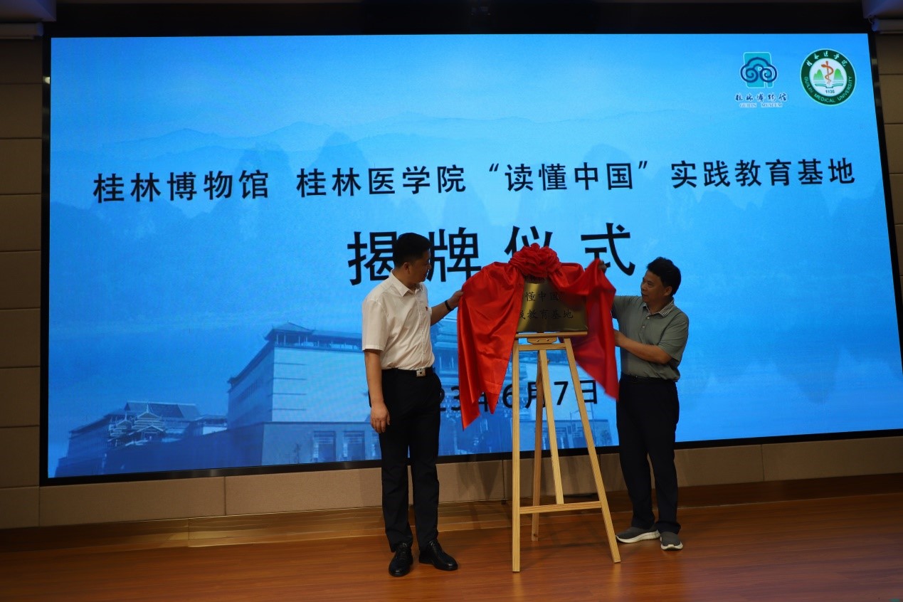 为积极响应和落实习近平总书记在文化传承发展座谈会上的重要讲话精神,6月7日,桂林医学院在桂林博物馆举行“读懂中国”实践教育基地揭牌仪式。桂林医学院国际教育学院与桂林博物馆领导共同为基地揭牌,桂林医学院国际教育学院师生代表、桂林博物馆工作人员参加揭牌仪式。