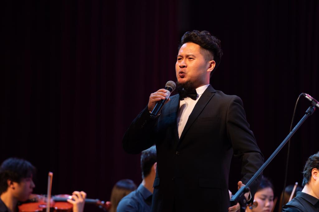 音乐会上,来自广西艺术学院交响乐团的师生们为我校师生带来了一场高水准的音乐盛宴。一首《卡门序曲》拉开了音乐会的帷幕;管弦乐合奏《斯拉夫舞曲》《我的中国心》曲调恢弘,让人心潮澎湃;男声独唱《向往》豪情满怀、振奋人心;女声独唱《美丽壮乡新时代》尽显广西的美丽与热情;琵琶与乐队《唱支山歌给党听》、小提琴协奏曲《九儿》两首耳熟能详的旋律改编的作品,带来亲切熟悉的视听感受;音乐会以合唱《歌唱祖国》结束,全场齐声高唱,掌声经久不息。
