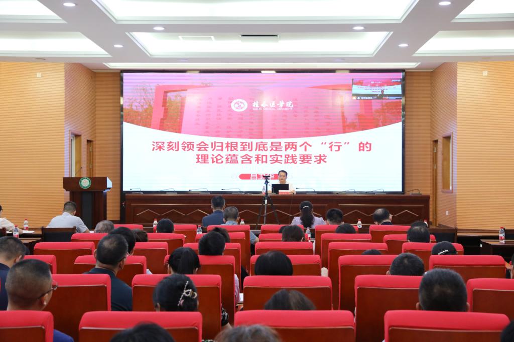 根据中层干部学习贯彻党的二十大精神集中轮训工作安排,6月20日,我校在临桂校区明德楼101会议室召开专题培训会,马克思主义学院副院长吕卫华教授作题为“深刻领会归根到底是两个‘行’的理论蕴含和实践要求”的专题报告,全体中层干部参加培训会。