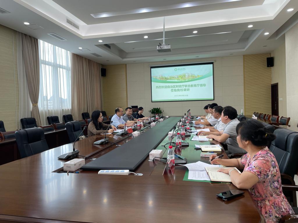 6月26日下午,自治区财政厅教科文处处长赵嵩桥一行4人到我校开展本科高校经费使用管理专题调研,调研座谈会在临桂校区明德楼502会议室举行,我校党委常委、总会计师周国增及财务处、科技处、基建处相关人员参加座谈会。