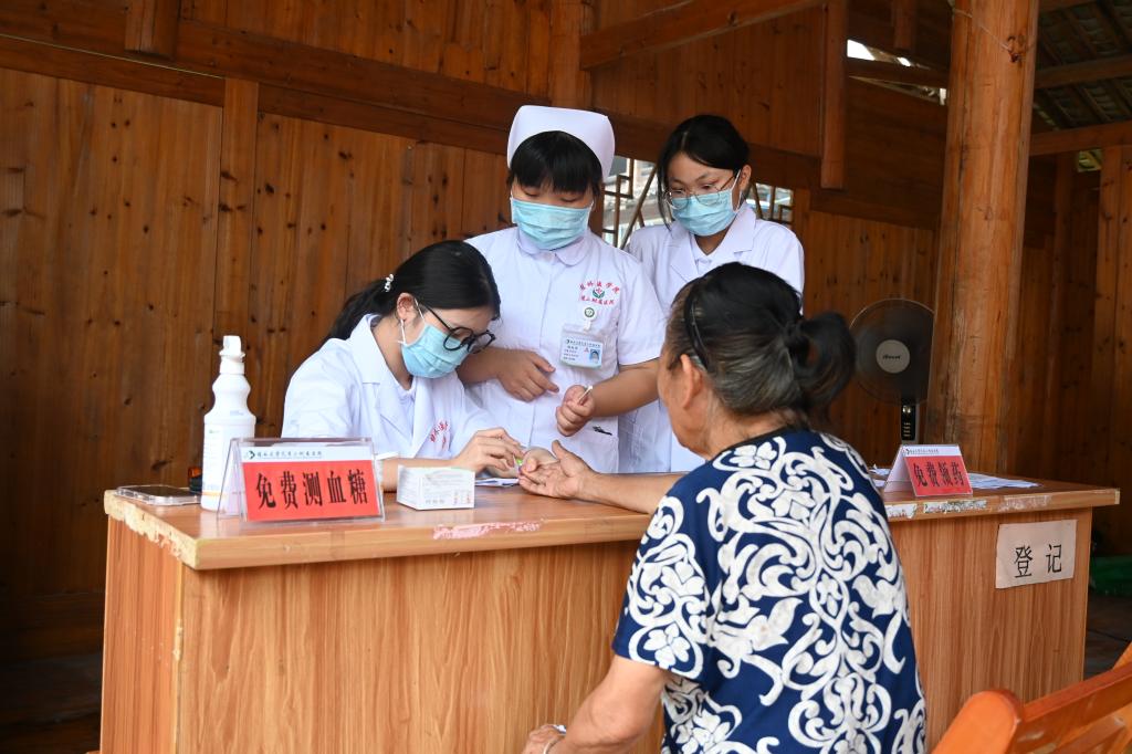 护士为村民测血糖、发放相关药品