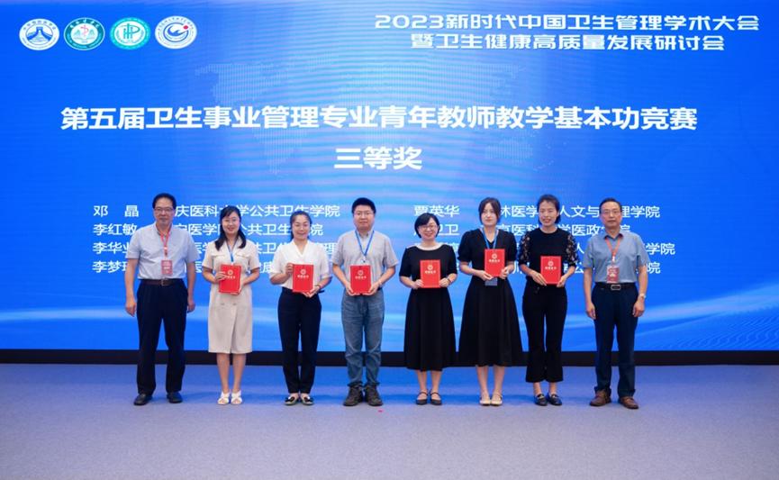 随后,吕军宣布王陇德院士、胡善联教授获得本年度卫生管理杰出贡献奖,并由来自华中科技大学和南京医科大学的青年教师代表分别向两位获奖者致敬辞。此外,由中华预防医学会卫生事业管理分会主任委员、复旦大学郝模教授,胡志教授向“第五届卫生事业管理专业青年教师基本功竞赛”的获奖者颁发获奖证书。其中,我校人文与管理学院覃英华老师获得青年教师基本功竞赛三等奖。