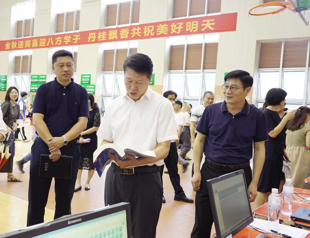暑气尚未褪去,秋风送去些许凉爽,学校的迎新工作井然有序。当天上午,张志勇、王赣华、陈旭、李清华等校领导到迎新现场检查迎新工作,他们对新生的入校报到等情况进行了详细了解和关心,并亲切慰问现场工作人员和志愿者。