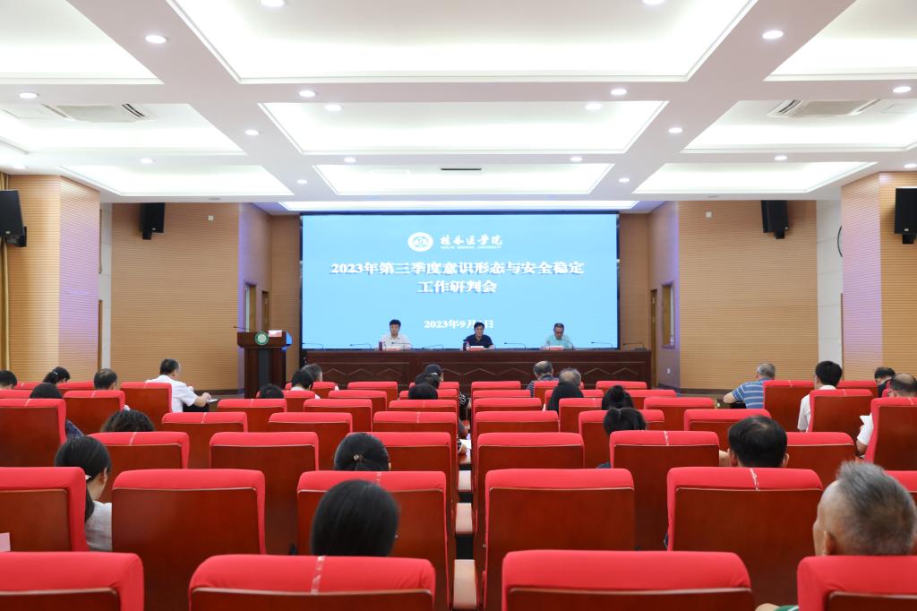 9月1日下午,我校在临桂校区明德楼101会议室召开2023年第三季度意识形态与安全稳定工作研判会。学校党委副书记王赣华,党委常委、副院长辛懋,党委常委、纪委书记谢忠文出席会议,学校各二级党委书记、各部门单位主要负责人参加会议。会议由辛懋主持。