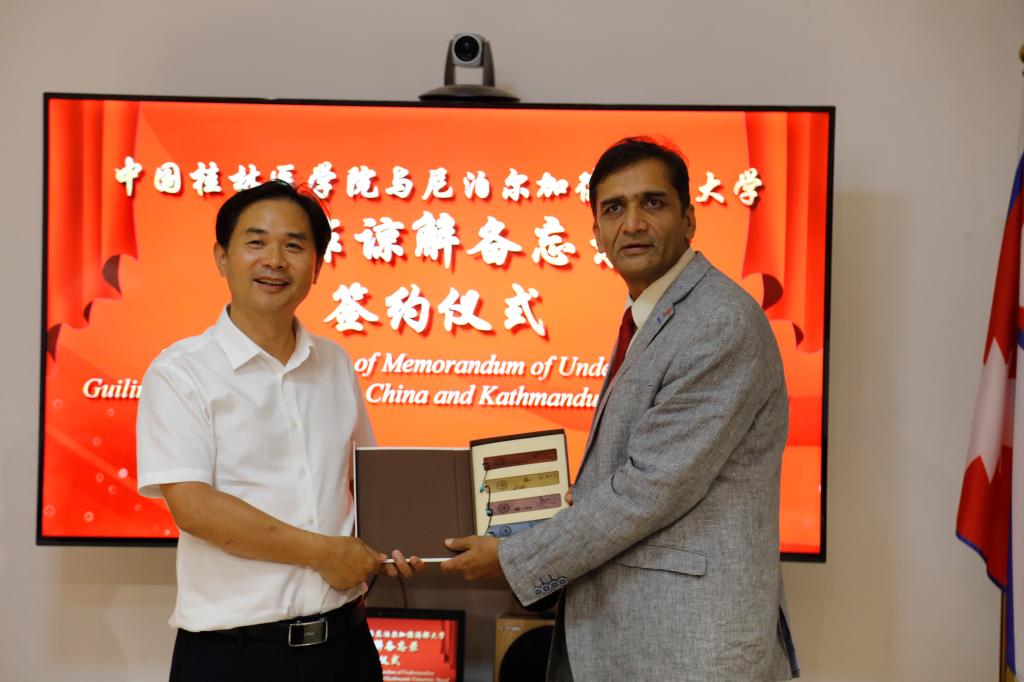 李清华和Achyut Prasad Wagle分别代表两校签订校际合作备忘录并互赠礼品,标志着两校正式建立合作伙伴关系,开启两校交流合作第一篇章。