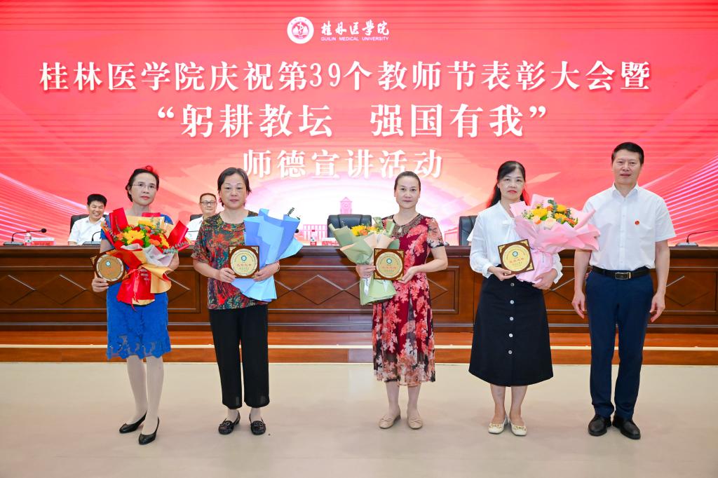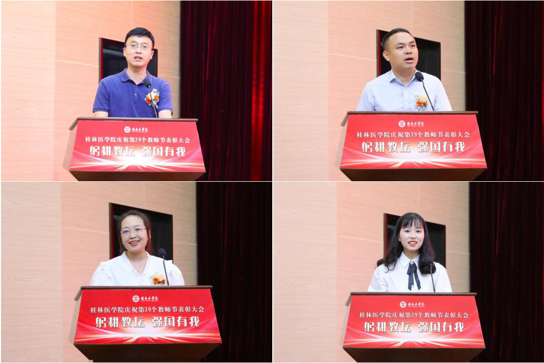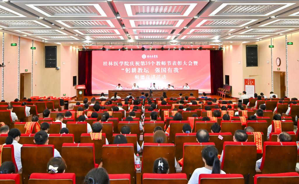 四季持恒勤躬耕,桃李春风敬师恩。9月8日下午,桂林医学院庆祝第39个教师节表彰大会暨“躬耕教坛 强国有我”师德宣讲活动在临桂校区公共教室北楼多功能报告厅隆重举行。在家校领导张志勇、王赣华、辛懋、李清华、周国增,校属各单位部门主要负责人、教师代表、新入职教师代表、离退休教师代表、民主党派及无党派人士代表和学生代表欢聚一堂,共同庆祝这个温馨的节日。校党委书记、院长张志勇作大会主题讲话。校党委副书记王赣华主持会议。会议通过网络进行全程直播。