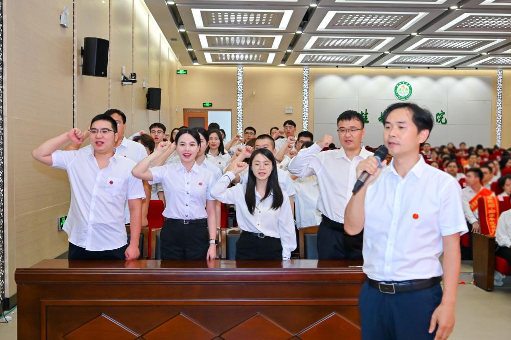 护佑生命,传承医术,春风化雨,薪火相传。今年新入职的青年教师代表们在李清华的带领下庄严宣誓:我志愿成为一名人民教师,忠诚党的教育事业,遵守教育法律法规,履行教书育人职责,引领学生健康成长,做到有理想信念、有道德情操、有扎实学识、有仁爱之心,为教育发展、国家繁荣和民族振兴努力奋斗!