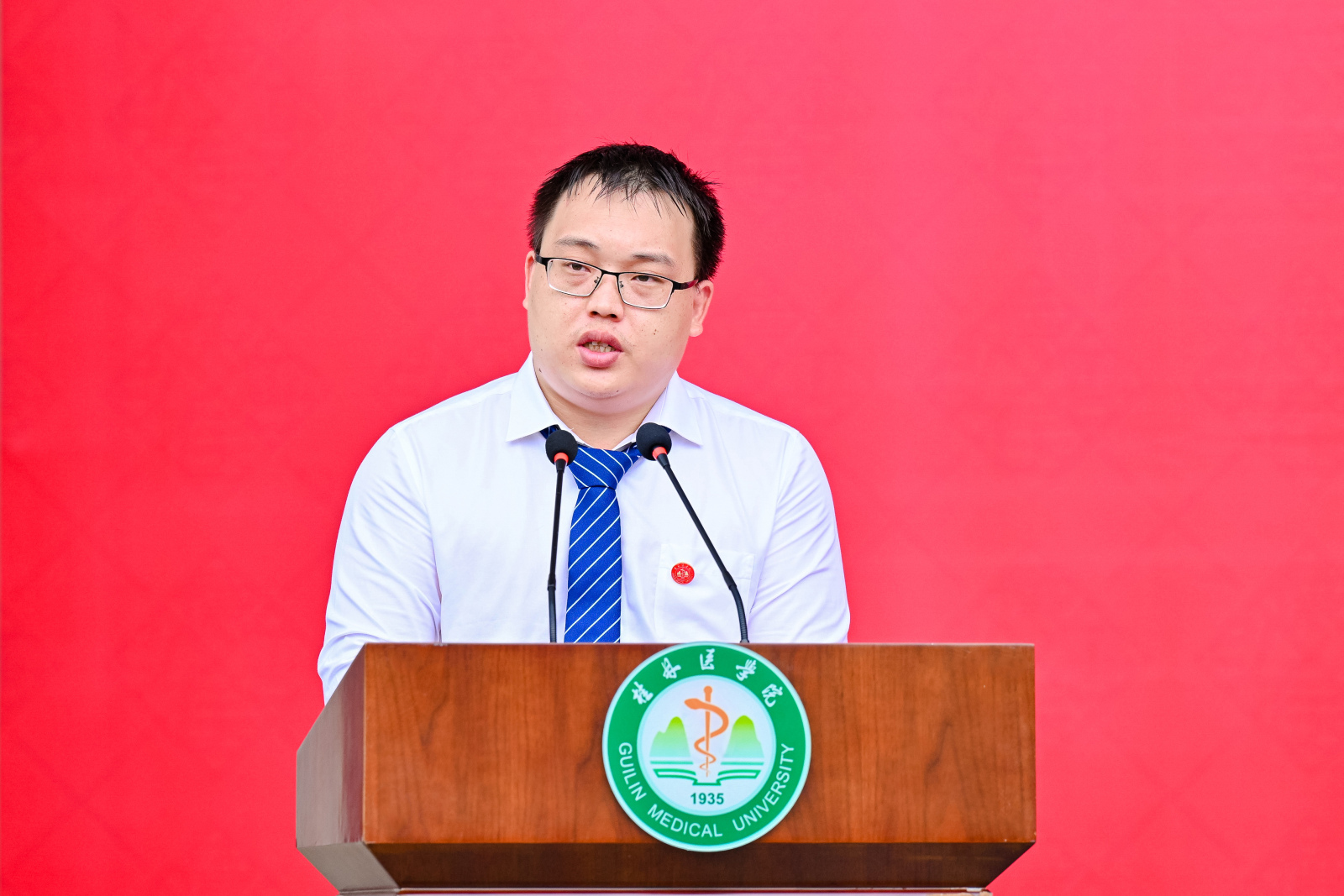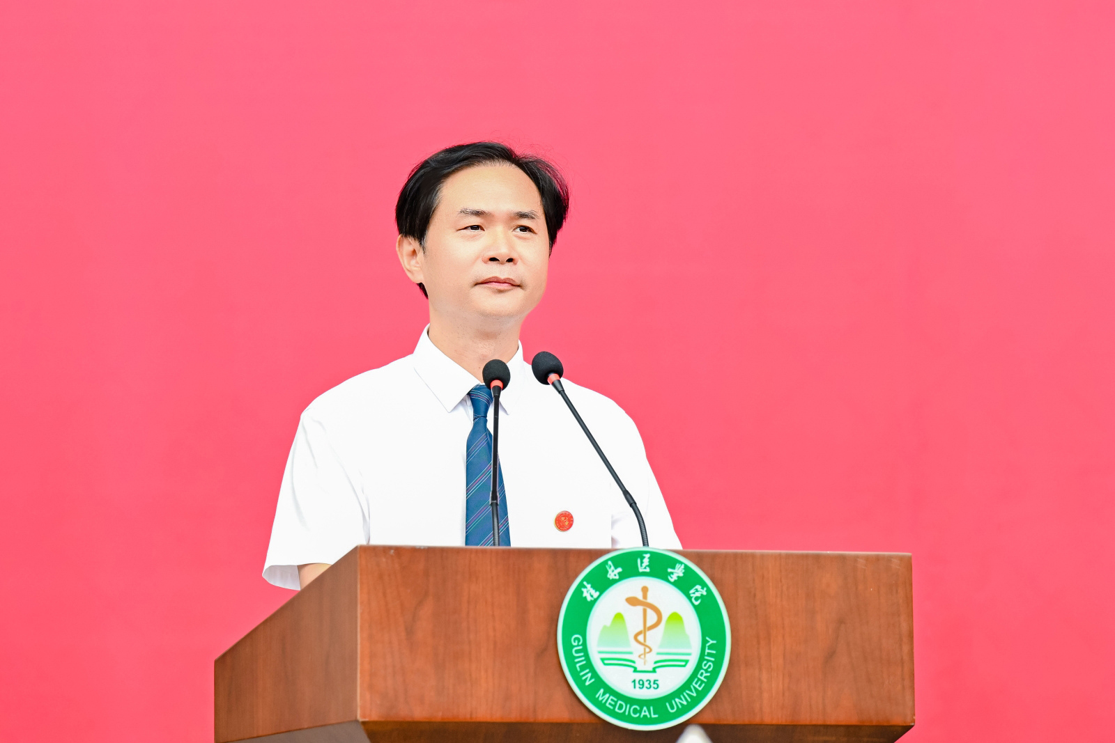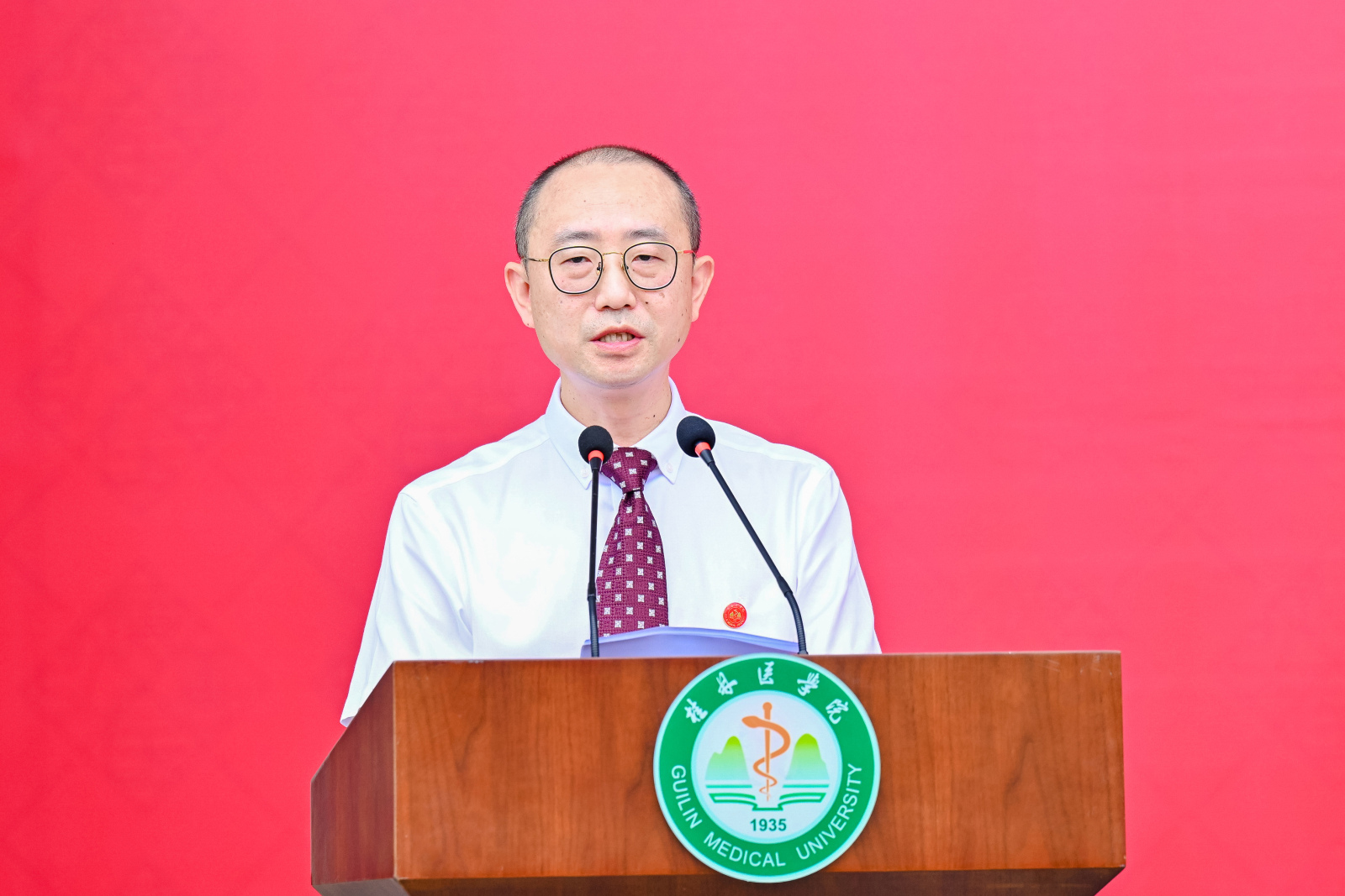 张志勇深情回顾了桂医发展88年的薪火历程和始终如一的办学初心。他表示,在一代又一代桂医人的努力奋斗下,学校如今已发展成为拥有3个校区,20个二级学院(系、部),3所直属附属医院,教职工6000多人,教授、博士700多人,全日制在校生1万4千余人,集教学、科研、医疗、保健为一体的高等医科院校。去年,学校正式获得博士学位授予权,历史性地建成了“本、硕、博”完整高等医学人才培养体系,今年首次迎来20名博士新生,这是桂医历史发展上值得纪念的又一重要时刻,必将载入史册!