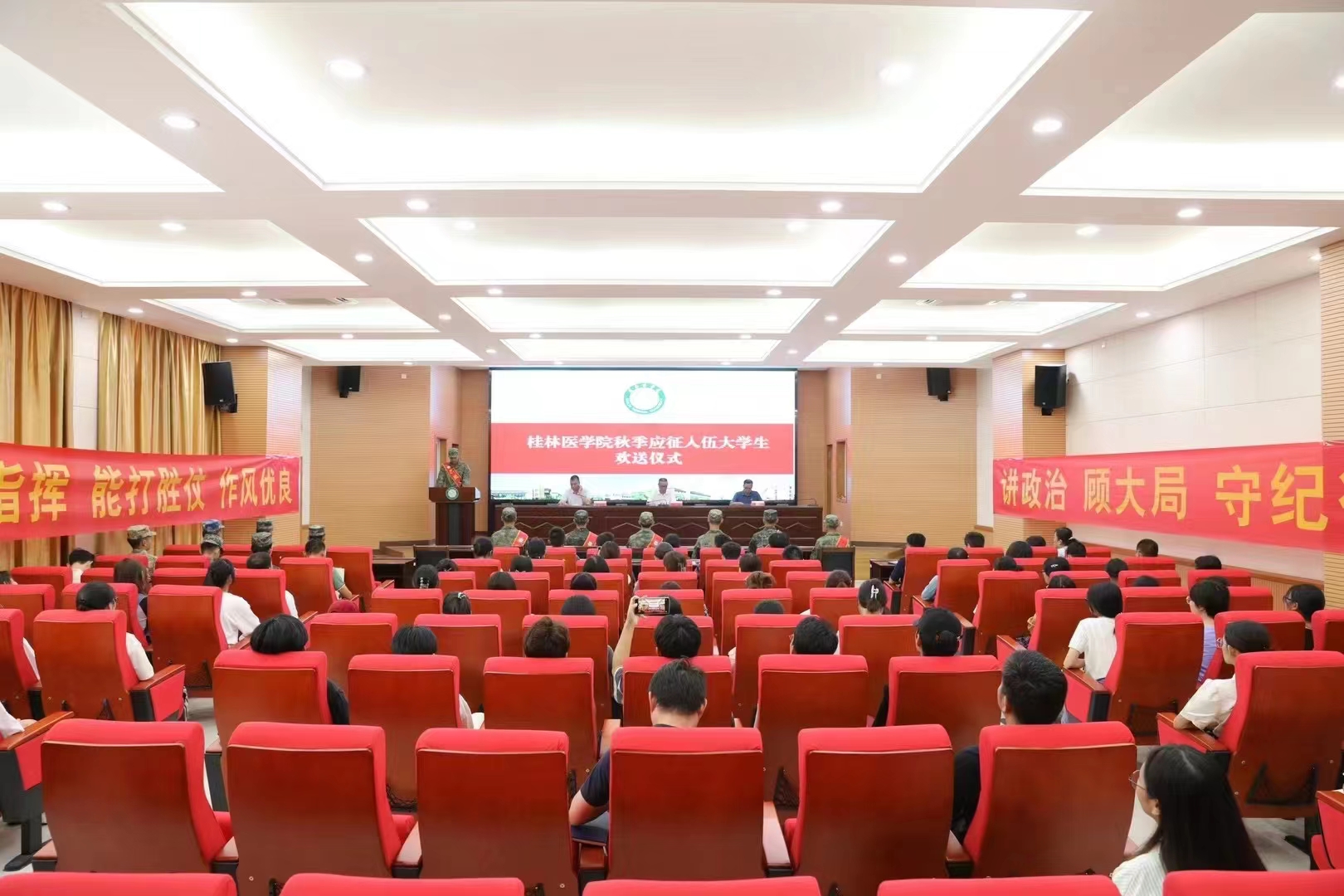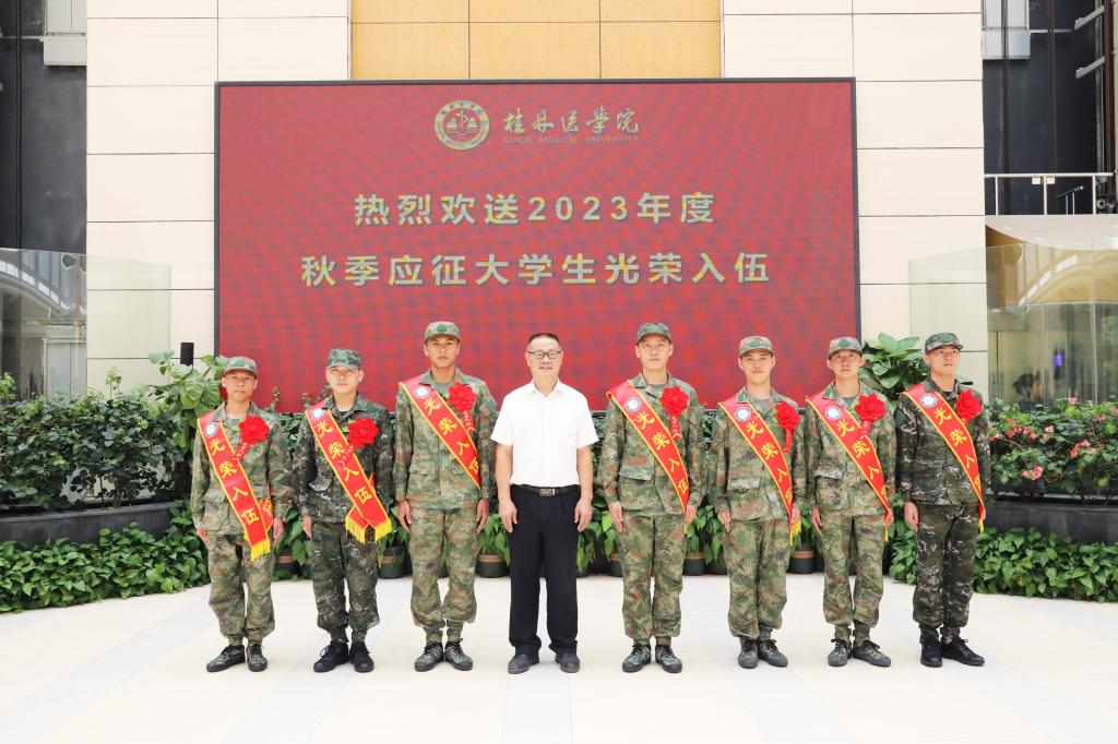 9月15日上午,我校在临桂校区明德楼101会议室举行2023年秋季大学生参军入伍欢送仪式。学校党委常委、副院长、征兵工作小组副组长辛懋出席,校征兵工作领导小组成员、家长代表、师生代表参加欢送仪式。仪式由学校武装部负责人主持。