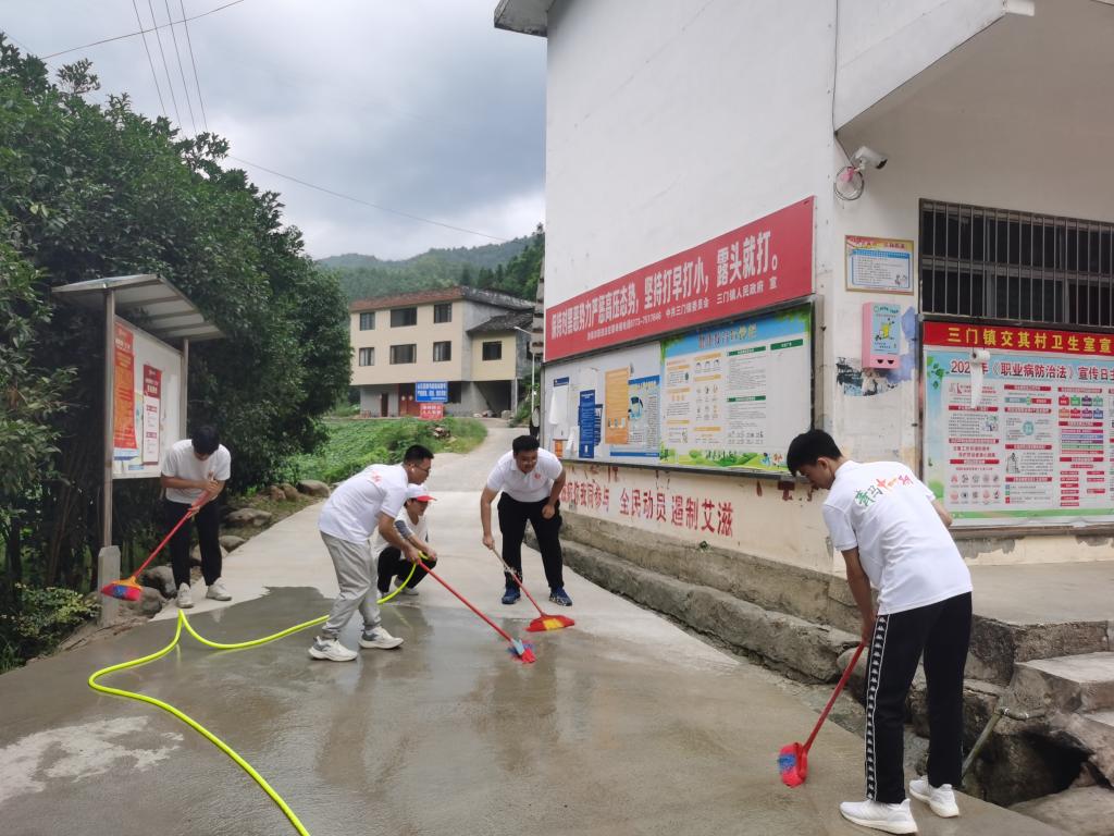 志愿者清扫乡村街道