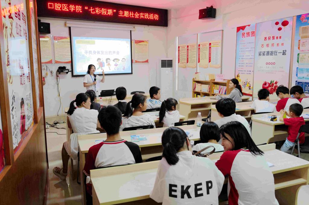 “七彩假期”志愿服务团队成员给青少年授课