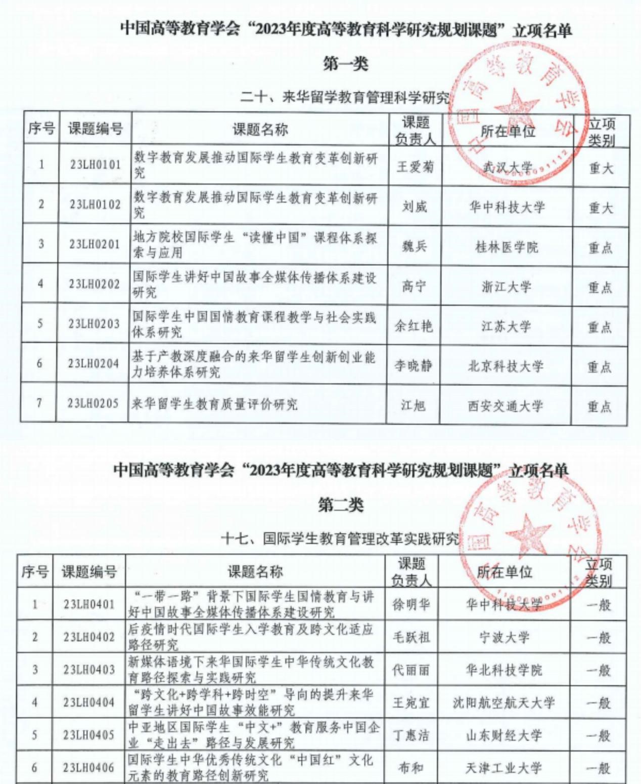 近日,中国高等教育学会公布“2023年度高等教育科学研究规划课题”立项,我校魏兵教授团队申报的《地方院校国际学生“读懂中国”课程体系探索与应用》在竞争中脱颖而出,获来华留学教育管理科学研究重点项目立项。
