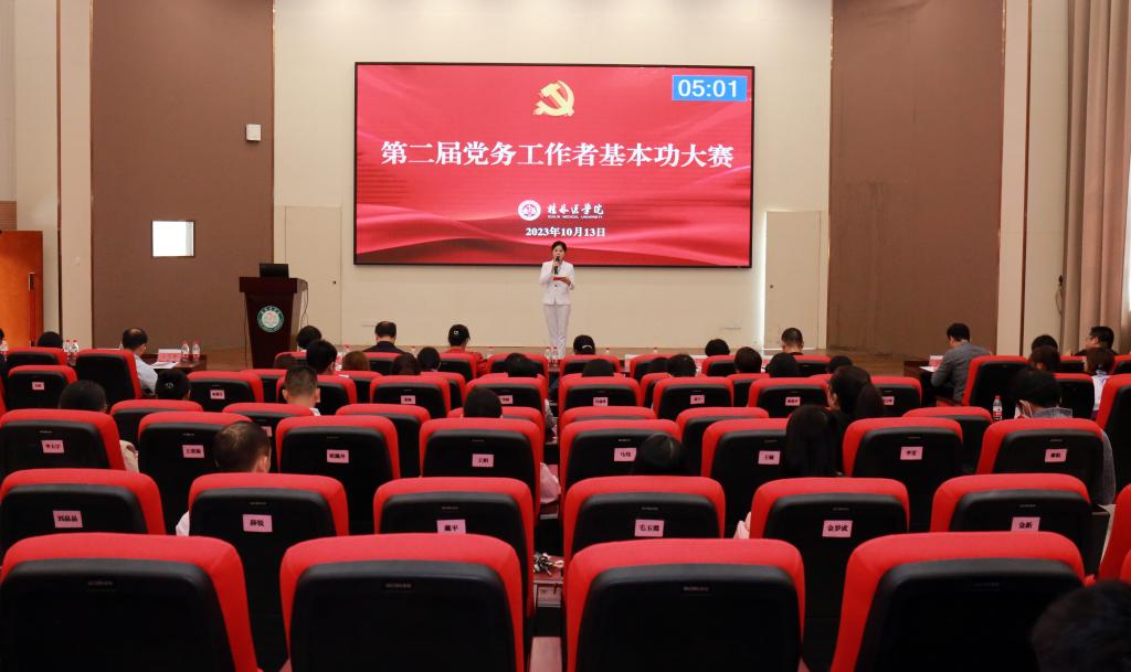为深入学习贯彻习近平新时代中国特色社会主义思想和党的二十大精神,贯彻落实习近平总书记关于党的建设的重要思想,扎实推进基层党建“五基三化”提升年行动,深化拓展主题教育成果,积极营造“比学赶超、创先争优”的浓厚氛围,以赛促建加强党务干部队伍建设,10月12-13日,我校第二届党务工作者基本功大赛决赛在临桂校区举行。学校党委副书记王赣华,党委组织部、各二级党委负责人出席活动,基层党务工作者和党员代表等100余人现场观摩比赛。大赛由校党委组织部主办、附属医院(临床医学院)党委承办。