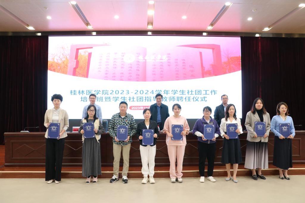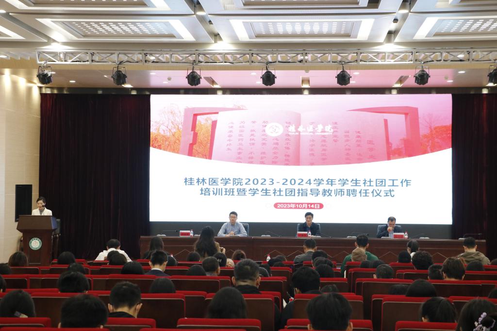 为深入贯彻落实习近平总书记关于青年工作的重要思想,落实各项学生社团改革措施,夯实我校学生社团改革成果,提升我校学生社团工作总体水平,10月14日,我校在临桂校区教学北楼多功能报告厅举行桂林医学院2023-2024学年学生社团工作培训班暨学生社团指导教师聘任仪式。学校党委副书记王赣华、学生工作部(处)、校团委相关负责人出席活动。
