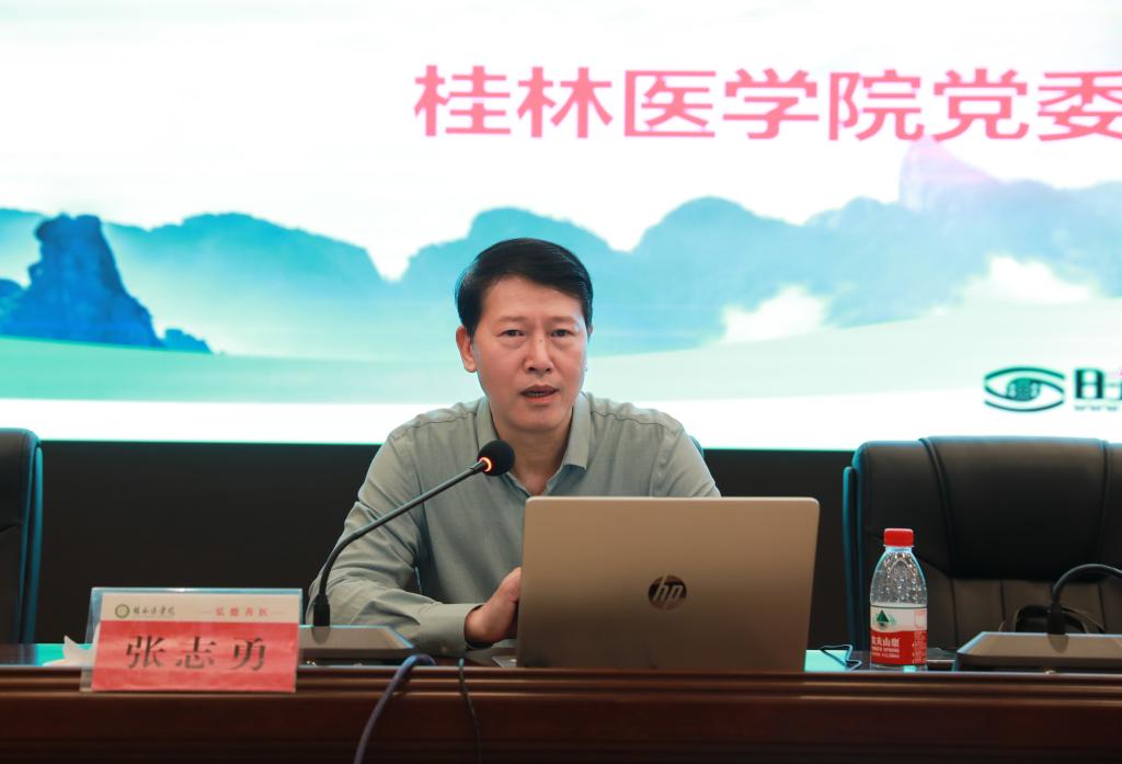 张志勇以“赓续历史文脉 谱写当代华章”为题,从临床医学和公共事业管理类专业实际出发,围绕“历史悠久缔造中华文化”“培根铸魂推动文化繁荣”“笃定前行建设现代文明”三个方面,结合医学院校人才培养目标、自身工作经历和主题教育读书体会,对中华文明五个突出的特征、当前我国文化事业繁荣发展的现状和新时代新的文化使命等内容进行了系统讲解。