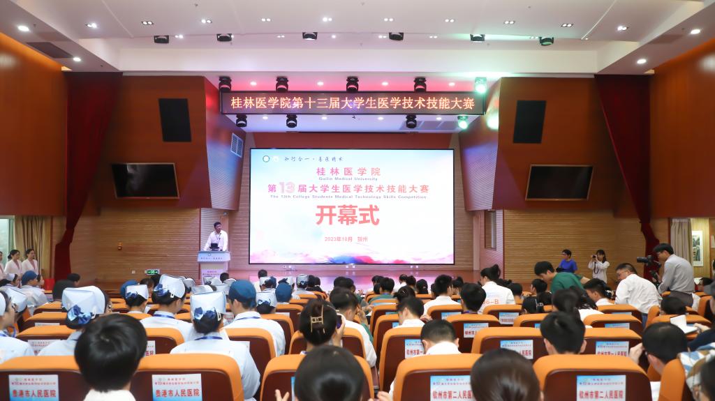 10月27日,“桂林医学院第十三届大学生医学技术技能大赛”的临床医学专业、护理学专业两个赛道的竞赛在美丽的长寿之乡贺州顺利举行。此次大赛由桂林医学院教务处主办,桂林医学院附属贺州市人民医院承办,其中临床医学专业赛道有来自19家教学实习医院的24支参赛队伍,护理学专业赛道有来自16家教学实习医院的16支参赛队伍。桂林医学院党委常委、副院长李清华,贺州市卫生健康委副主任罗和宁,贺州市人民医院党委书记苏飞群,桂林医学院教务处、各参赛单位相关领导、嘉宾及参赛选手近400人共同参加开闭幕式并观摩比赛。开幕式由桂林医学院教务处负责人主持。