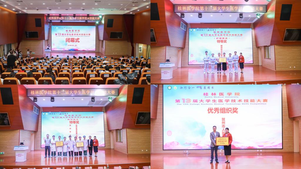 经过一整天紧张激烈的角逐,两个赛道评选出团体特等奖3项、一等奖4项、二等奖7项、三等奖26项,大赛还产生了优秀组织奖、优秀指导教师、单项操作最佳选手等奖项,达到了以赛促教、以赛促改、以赛促学的预期目的。预防医学赛道的竞赛将于11月17日在桂林医学院临桂校区公共卫生学院举行。