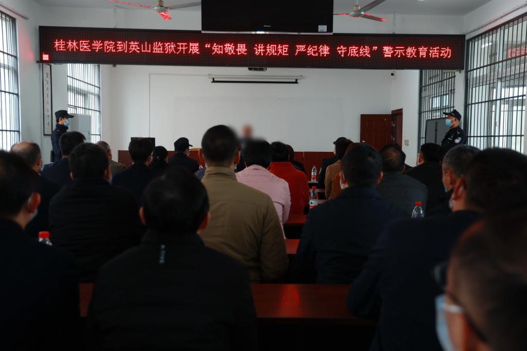 为深化“清廉桂医”建设,进一步增强学校领导干部的纪律意识、规矩意识、法律意识,筑牢拒腐防变的思想防线,11月15日上午,学校党委书记张志勇带队,党委副书记、院长曾小云,党委常委、副院长陈旭、李清华,党委常委、纪委书记韦政权,党委常委、总会计师周国增等在家校领导,重点部门主要负责人,三所直属附属医院领导班子成员和学校纪委办公室全体人员共43人赴英山监狱开展警示教育活动。