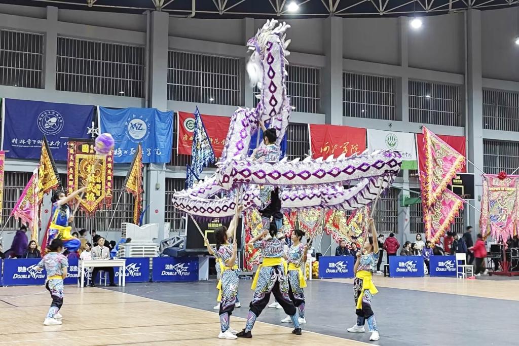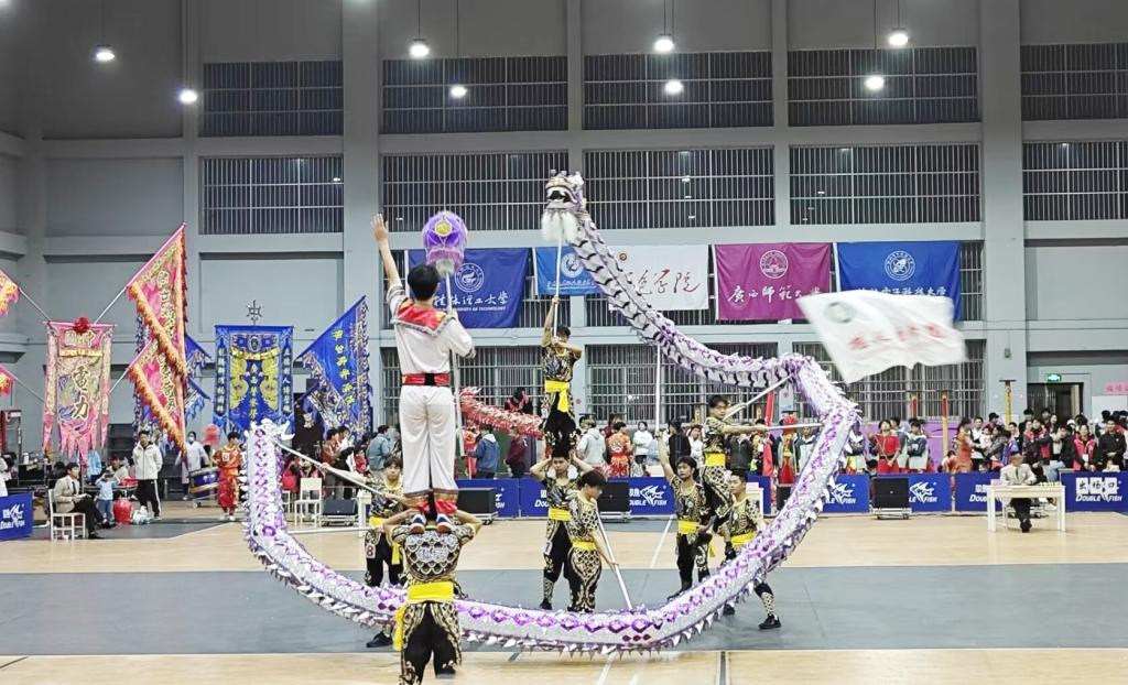 12月1日,第五届广西壮族自治区大学舞龙舞狮锦标赛在百色学院擂响“战鼓”。来自全区27所高校500多名龙狮运动健儿奋勇争先,勇敢逐梦。