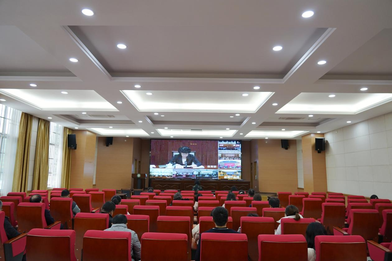 为深入贯彻落实习近平总书记重要指示批示精神,全面落实党中央、国务院关于高校毕业生就业创业工作决策部署,12月5日,教育部、人力资源社会保障部共同召开2024届全国普通高校毕业生就业创业工作网络视频会议。教育部党组书记、部长怀进鹏,人力资源社会保障部党组成员、副部长吴秀章,工业和信息化部党组成员、副部长王江平出席会议并讲话,教育部党组成员、副部长翁铁慧主持会议。我校在明德楼101会议室设立分会场,校党委常委、副院长陈旭,相关职能部门和二级院系主要负责人、主管学生副书记、毕业班辅导员、招生与就业指导服务中心全体人员参加会议。