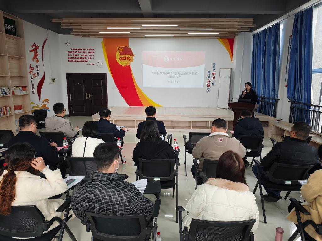 为深入学习贯彻习近平新时代中国特色社会主义思想,落实习近平总书记关于青年工作的重要思想,坚持全面从严治团,加强基层团组织规范化建设,1月10日下午,我校在临桂校区大学生活动中心209室举行2023年度基层团组织书记述职评议会。学校党委常委、副院长李清华出席会议并讲话。党委组织部、学生工作部(处)、校团委及各二级学院相关负责人参加会议。