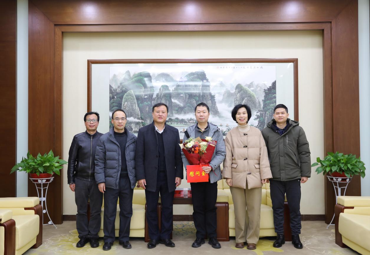 龙年春节来临之际,2月7日上午,桂林市委组织部副部长、市委人才办主任孙志武到我校慰问基础医学院院长陈健教授,赠送了鲜花,并致以诚挚的新春问候和美好祝福。学校党委常委、副院长陈旭陪同慰问,市委组织部人才科负责人周贵靖,学校人事处处长、人才办主任参加慰问。