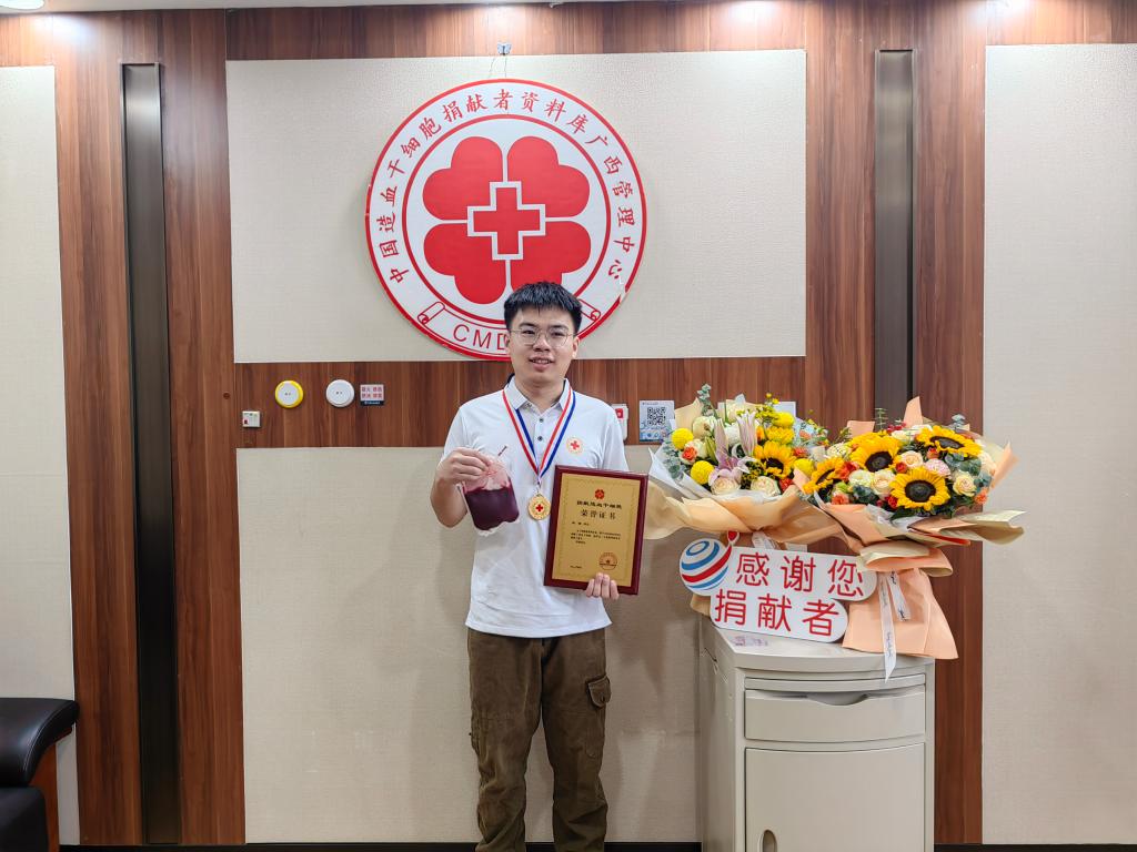 欧源出生于2002年,是我校全科医学院2021级全科医学专业在校大学生。当被问及当初为何会进行造血干细胞留样,他说,“我在医院看到患血液病的孩子都非常小,当了解到造血干细胞移植是目前最有效的根治血液病医疗手段时,我的脑子里都是‘我决心竭尽全力除人类之病痛,助健康之完美……’的医学生誓言,然后便有了加入中华骨髓库的想法。”2022年5月6 日,学校红十字会举办无偿献血活动,欧源捐献了400毫升血液,同时志愿报名加入了中国造血干细胞捐献者资料库管理中心。