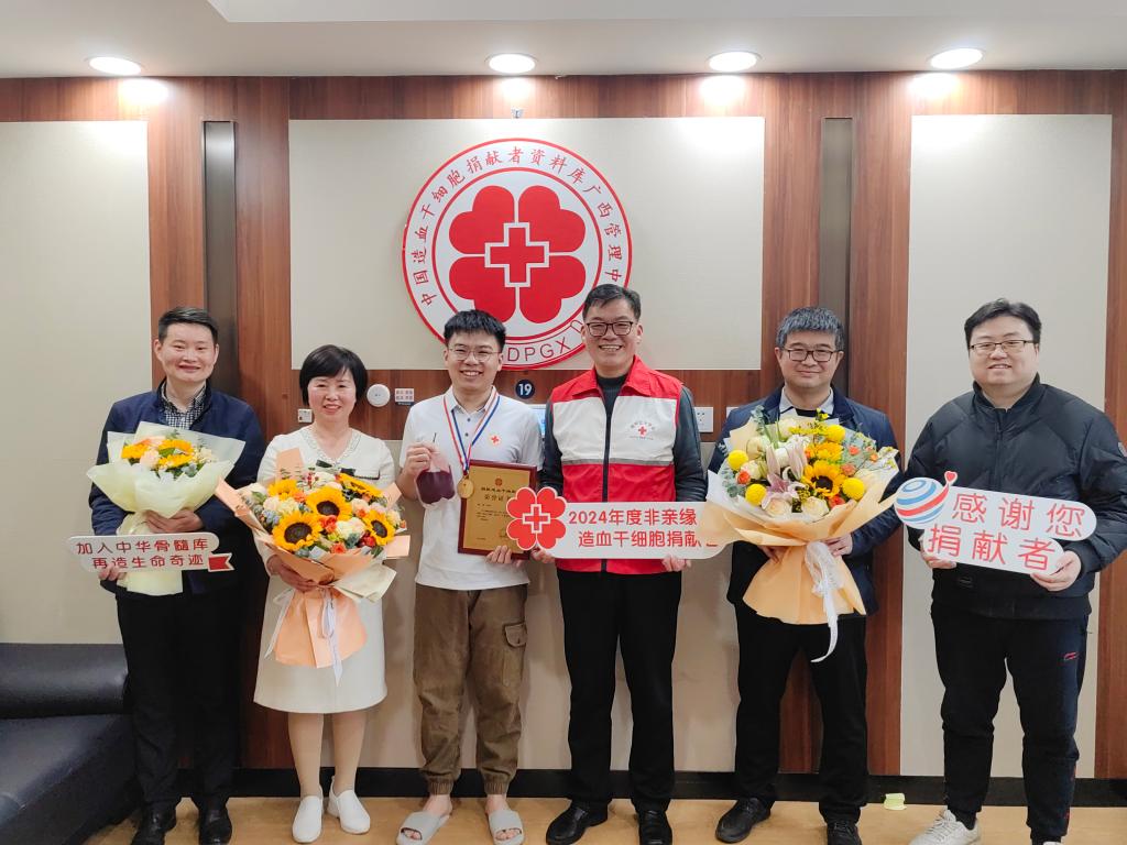 2023年11月,欧源与一名患者配型成功,他毫不犹豫同意捐献,积极配合完成了高分辨配型、体检等流程。今天,他完成的造血干细胞混悬液捐献,成为全国第17058例,广西第605例,桂林市第70例,桂林医学院第13例造血干细胞捐献者。欧源表示,“我愿意成为一名‘生命战士’,为患者带去生的希望,明天就是‘学雷锋日’,一想到我拯救了一条年轻且充满无限可能的小生命,我的心里无比自豪。衷心祝福患者能够战胜病魔,早日康复,我会将这份爱继续传递下去,让更多志愿者参与到这项生命事业中来,为挽救更多的患者贡献力量。”