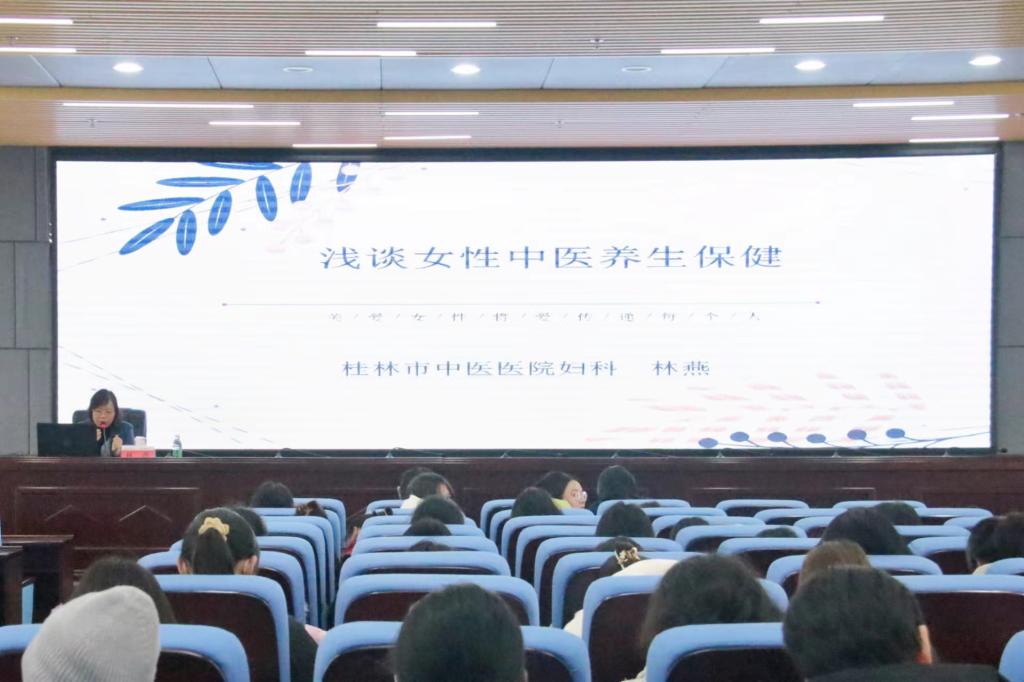 3月5日下午,女性中医保健知识讲座在科学实验中心一楼报告厅开讲,桂林市中医院专家从女性各阶段生理特点入手,结合临床经验,就妇科常见病、多发病的预防和治疗进行阐述,强调了中医在女性保健中的重要地位。她还特别介绍了如何通过按摩穴位来调理气血运行,增强身体免疫力,并现场指导师生进行穴位按摩,让大家亲身体验中医保健的魅力。