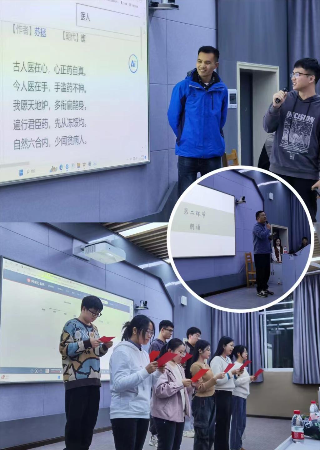 此外,临床医学院坚持“医学与人文融通”的办学理念,厚植人文底蕴,培养有温度的医生。通过组织2020级新医科卓越班开展了诗文朗诵主题班会等多种方式,培养新时代的好医生。班会上,师生精彩互动,同学们踊跃参与,才华横溢,在课余时间重温经典,启迪心智,收获快乐,通过集体朗诵《医人》,让学生们更深刻理解了作为医生的神圣职责,有效引导学生们杜绝不良诱惑,将以患者为中心,救死扶伤、悬壶济世的信念内植于心。