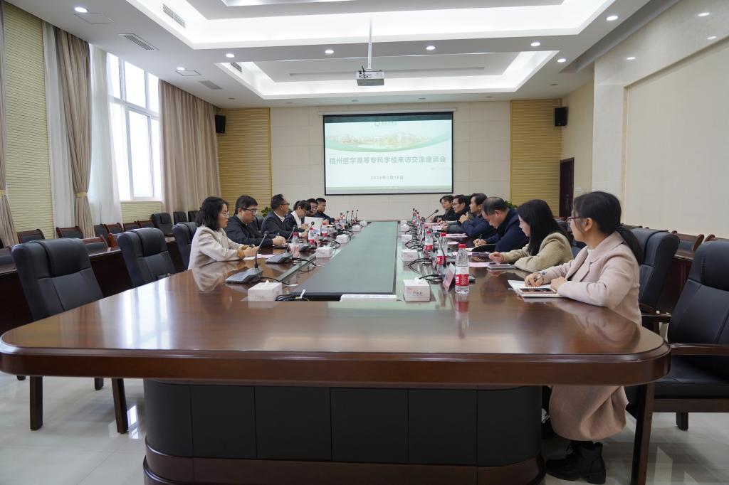 3月18日下午,梧州医学高等专科学校副校长肖志勇一行6人到我校进行座谈交流。学校党委常委、副院长李清华,教务处、国有资产管理处、学工处和护理学院相关人员参加此次座谈交流会。会议由教务处副处长主持。