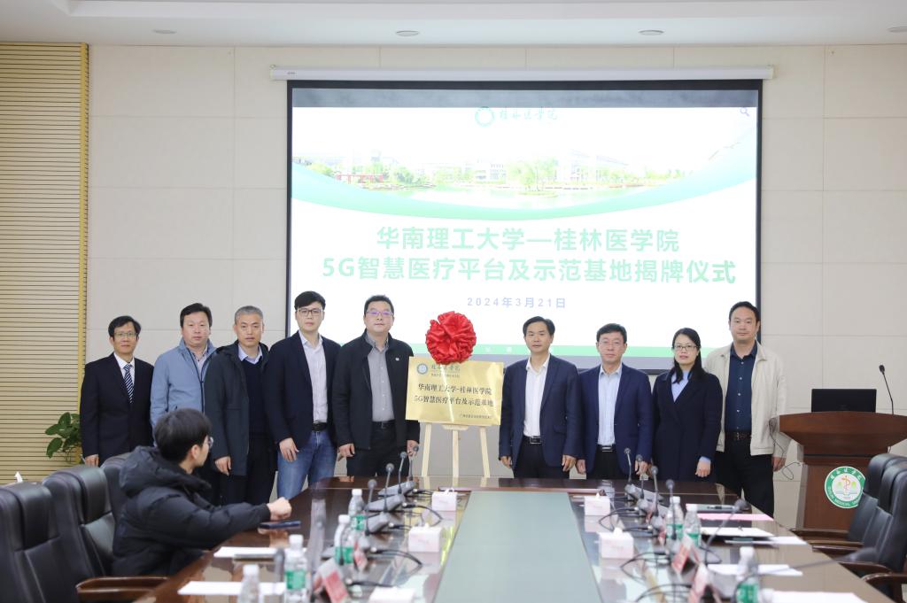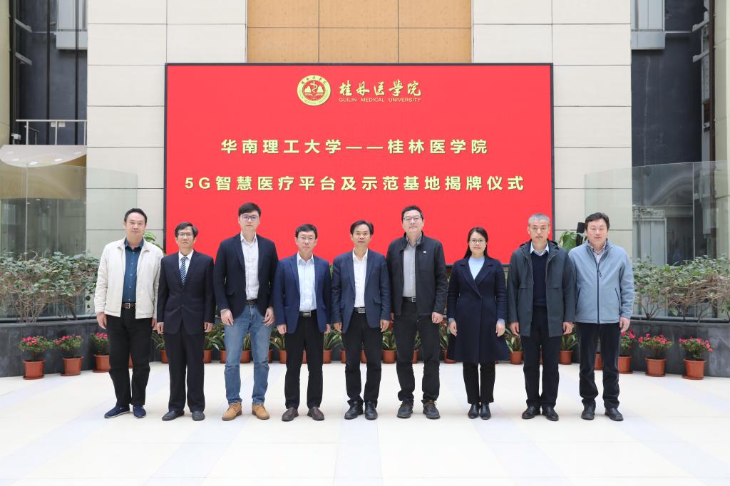 3月21日,我校举行“华南理工大学——桂林医学院5G智慧医疗平台及示范基地”揭牌仪式。校党委常委、副院长李清华,国家优青、华南理工大学电子与信息学院副院长唐杰教授出席揭牌仪式,科技处、信息中心、智能医学与生物技术学院师生参加了揭牌仪式。