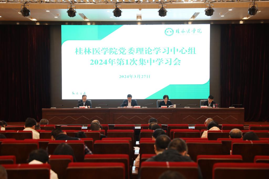 3月27日上午,我校在临桂校区教学北楼多功能报告厅召开校党委理论学习中心组2024年第1次集中学习会,专题跟进学习习近平总书记重要讲话重要指示批示精神和全国两会精神,深入学习贯彻习近平总书记对广西重大方略要求,号召全体党员干部锚定关键目标任务,聚焦创新求变,明确思路方向,以务实作风和有效举措推动学校各项事业高质量发展。在家校领导张志勇、曾小云、韦政权、周国增,以及校党委理论学习中心组全体成员参加会议。校党委书记张志勇主持会议并讲话。