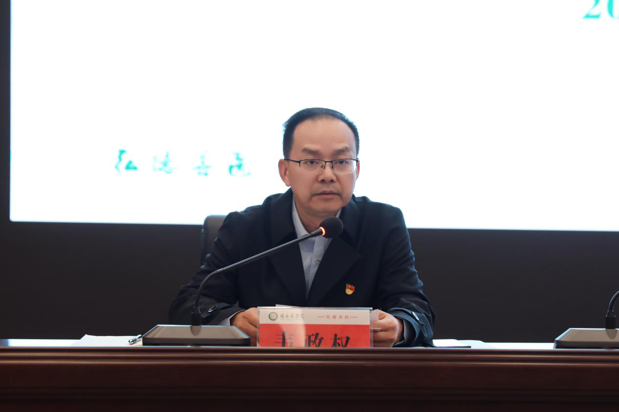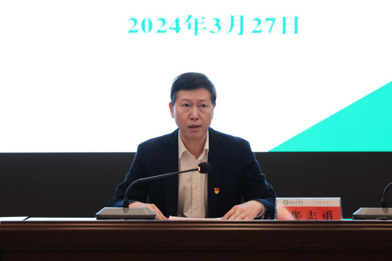 校党委书记张志勇作题为《深化自我革命 强化责任担当 纵深推进全面从严治党》的讲话。张志勇充分肯定了过去一年学校全面从严治党工作。他指出,2023年,学校党委坚持以习近平新时代中国特色社会主义思想为指导,深入贯彻党的二十大精神,全面落实新时代党的建设总要求,按照全面从严治党部署安排,认真履行主体责任,坚持把管党治党工作与学校各项事业发展同谋划、同部署、同推进、同考核,全面从严治党工作和清廉学校建设取得了新成效新进展。