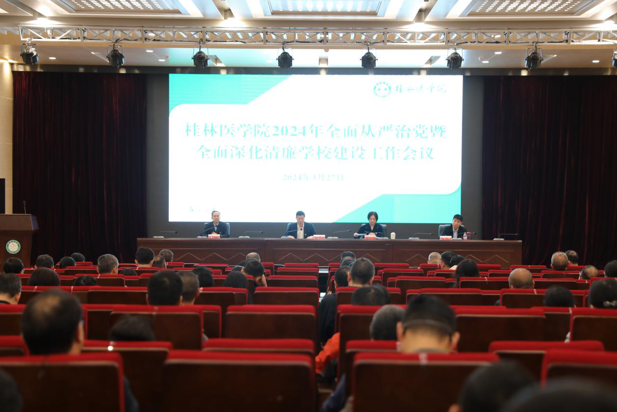 3月27日上午,我校在临桂校区教学北楼多功能报告厅召开2024年全面从严治党暨全面深化清廉学校建设工作会议,传达学习二十届中央纪委三次全会、自治区纪委十二届四次全会精神,贯彻落实2024年全区教育系统全面从严治党工作视频会议精神,全面总结学校2023年推进全面从严治党工作和清廉学校建设情况,分析研判形势,安排部署2024年重点任务。校领导张志勇、曾小云、韦政权、周国增出席会议。校党委副书记、院长曾小云主持会议。