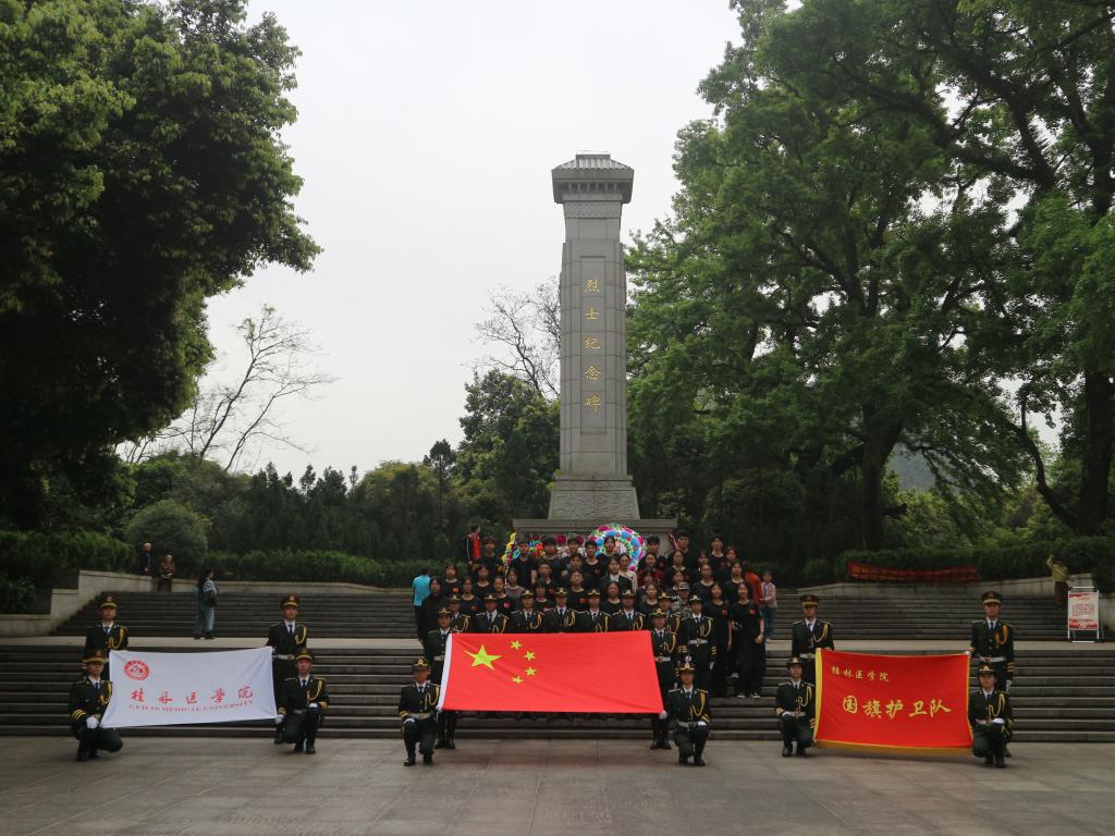 3月30日上午,桂林医学院国旗护卫队全体队员赴七星公园烈士纪念碑广场开展“英魂永存心,共筑爱国情”缅怀先烈祭扫活动。在庄严的烈士纪念碑面前,全体队员们整齐排列,神情肃穆,追思缅怀英雄们的丰功伟绩。