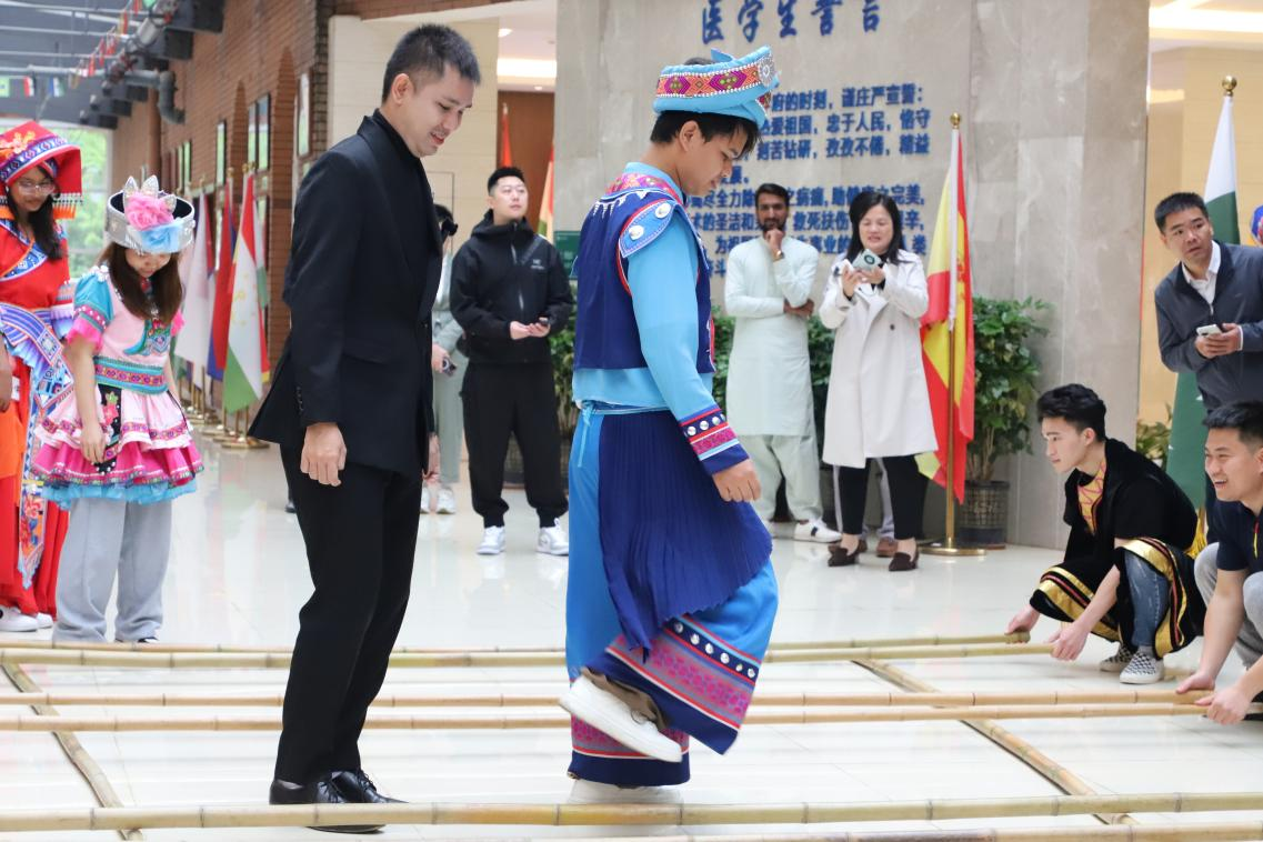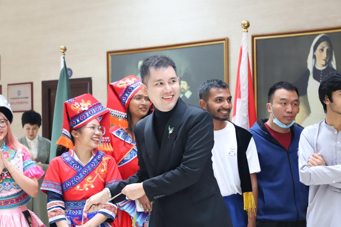活动还邀请了有着“中泰旅游达人”称号的泰国网红韩冰先生,韩冰先生同时也是南京大学国际关系学院的博士。他表示能与桂林医学院的留学生们共同体验这一中国少数民族传统节日,机会难得。他认为,任何一个民族的传统文化和习俗都是值得珍惜和传承的,泰国和广西的文化习俗也有相似的地方。他也在尽自己所能,将中国和泰国的优秀传统文化传递给两国年轻一代,希望年轻人在与时俱进的同时,不忘传统。同时,韩冰先生还与我校泰国留学生进行了热切交流。