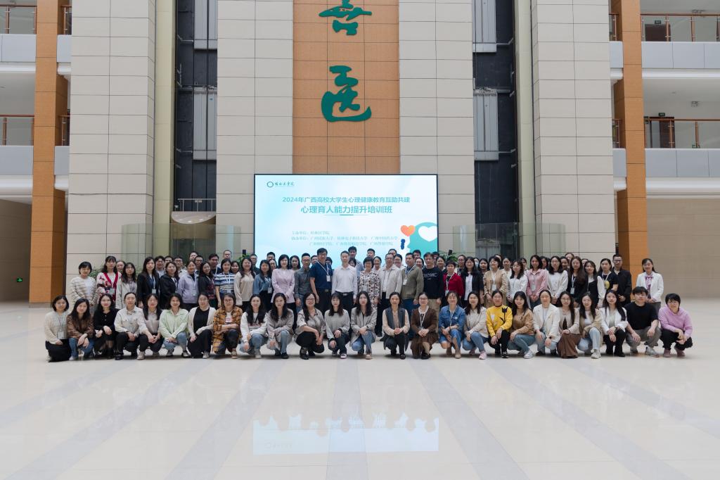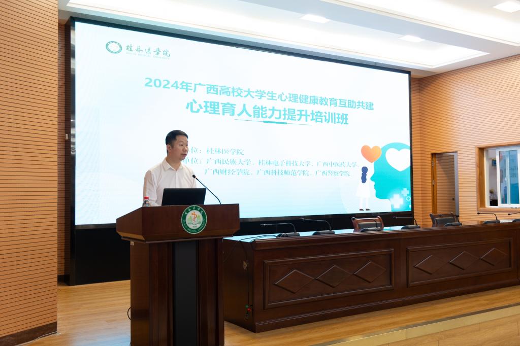 为贯彻落实广西高校心理健康教育互助共建大行动“优势互补、资源共享、互促共赢”精神,全面提升共建高校心理育人水平。4月18日—19日,2024年广西高校大学生心理健康互助共建心理育人能力提升培训班在桂林医学院举办。校党委常委、副院长陈健出席开班仪式并致辞,学生工作部(处)负责人参加了开班仪式。来自全区26所高校的心理健康教育专兼职教师、学工干部共120余人参加了培训。
