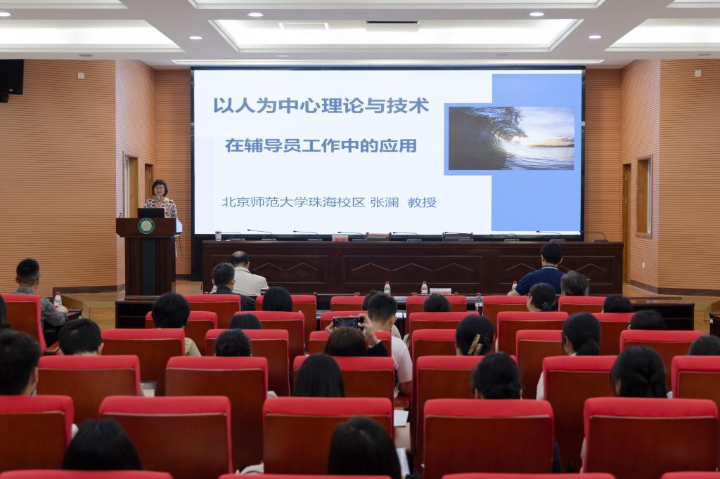 培训班邀请到北京师范大学心理学部MAP临床与咨询方向(珠海)负责人张澜教授、北京师范大学心理学部MAP(珠海)外部实习基地主管彭建国博士授课。张澜教授结合自身丰富的理论研究和实践探索,围绕“以人为中心理论与技术在辅导员工作中的应用”授课,融入理论学习、案例分析、角色模拟等多元素,强调了无条件积极关注、共情、治疗性倾听、重述等在心理咨询工作中的重要性,为学员带来精彩的学习、探讨和体验。彭建国博士以“团体辅导在高校辅导员工作中的应用”为题授课。他根据当今大学生的身心特点,利用“以人为中心”理念及人际交互作用原理,运用自己独创的教辅工具,从“做不到”、“想不到”、“看不到”三条线的团体体验中,由浅入深、层层推进,引导学员用团体力量解决团体问题。
