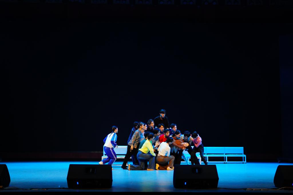 我校原创舞蹈《冷暖人心》以丈夫带怀孕的妻子看病为主线,以叙事性的形式,生动的表现了一群等待就诊的患者,从互相冷漠到互相帮助的温暖画面,展现了人们心灵的真善美,传递向上向善的价值观。桂医学子精彩的演出,赢得了观众们的阵阵掌声。