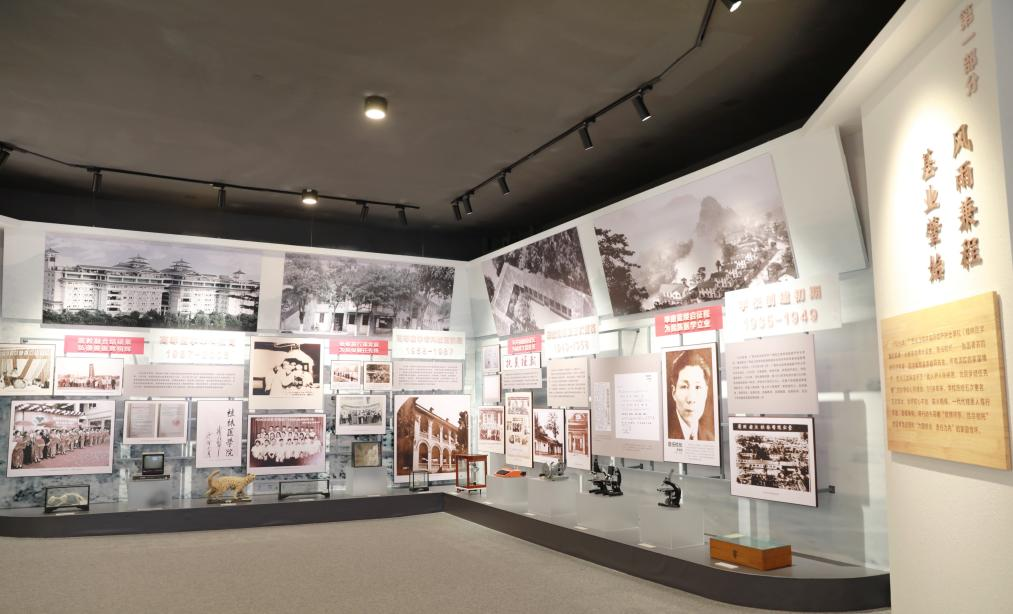 文化是涵育时代新人的思想源泉和精神宝库。党委宣传部不断强化校园文化建设,多措并举筑牢文化根基,持续打造以文铸魂、以文化人的文化育人氛围。2023年秋,全面优化更新的桂林医学院办学成果展正式与全体师生校友见面。展厅利用文字、图片、实物、多媒体等各种陈展手段,将学校近90年的建校发展历程和办学成果娓娓道来,再现了一代代桂医人艰苦奋斗、办学办医的时代足印,激励广大师生传承“弘德善医”校训精神,不忘为党育人、为国育才的初心使命。