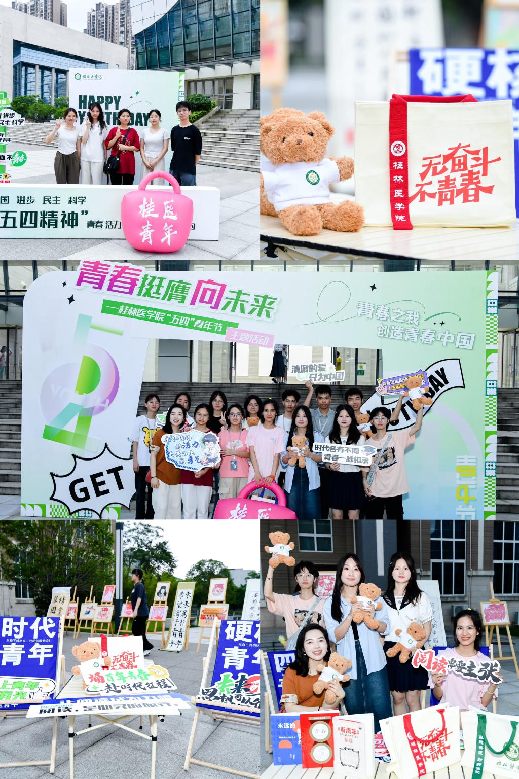 会场外,桂医青年通过“青春歌会”“青春书会”“青春展览”等“青”聚场活动,回顾共青团百年奋斗历程,展现桂医青年的青春与活力。