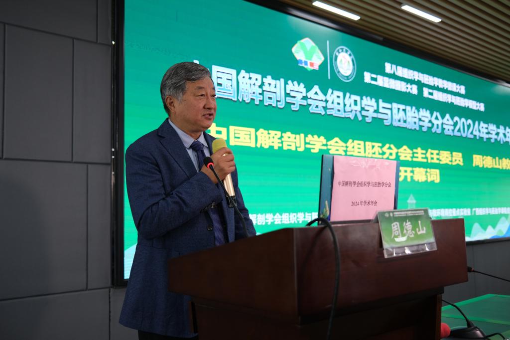 周德山教授感谢桂林医学院各级领导对承办本次大会的重视和支持,并就学会的历史、举办学术活动的情况以及本次大会的筹备情况和主要开展的交流活动进行了介绍,希望与会代表珍惜本次机会,加强与同行之间的学习交流,使组胚之家更有温度更有文化。