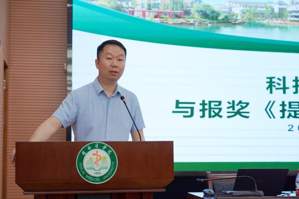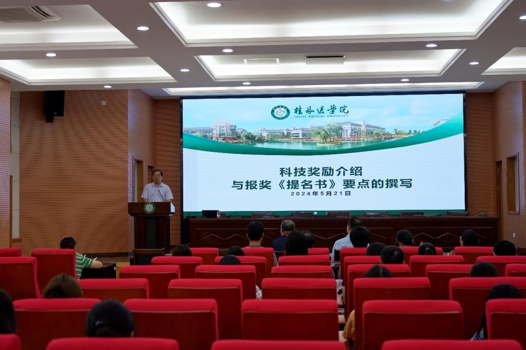 5月21日上午,我校在临桂校区明德楼101会议室举办主题为“科技奖励介绍与报奖《提名书》要点撰写”的专题讲座。校党委常委、副院长陈健出席并进行申报动员讲话,鼓励大家积极参与科技奖励申报工作。