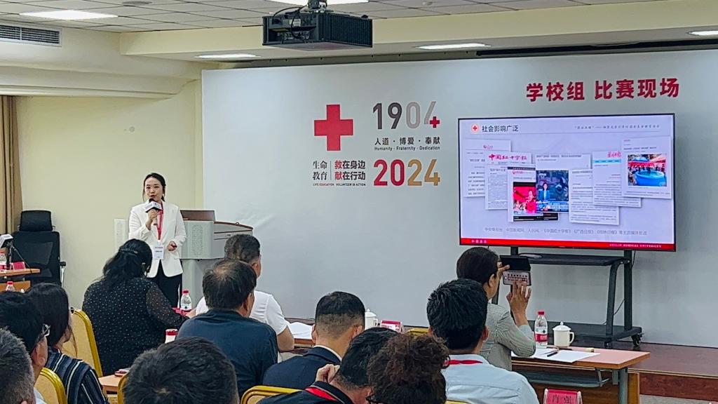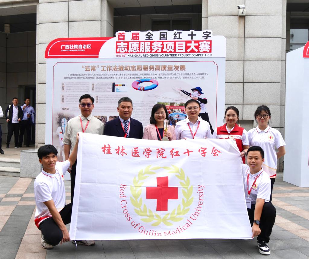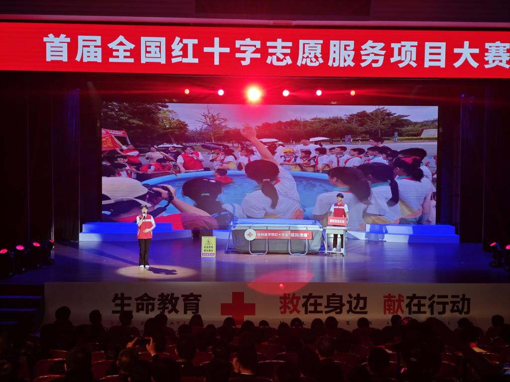 5月20日—22日,由中国红十字会总会、中央社会工作部联合主办的首届全国红十字志愿服务项目大赛在沈阳举行。十三届全国人大常委会副委员长、中国红十字会会长陈竺出席大赛颁奖仪式并为金奖项目团队颁奖,中国红十字会党组书记、常务副会长王可,中央社会工作部副部长蔡丽新,辽宁省副省长、省红十字会会长靳国卫出席大赛颁奖仪式并致辞。我校《“模拟池塘”——场景式青少年防溺水生命教育项目》作为广西唯一入围决赛的项目在比赛中脱颖而出,斩获金奖,同时受邀参加颁奖典礼现场展示。