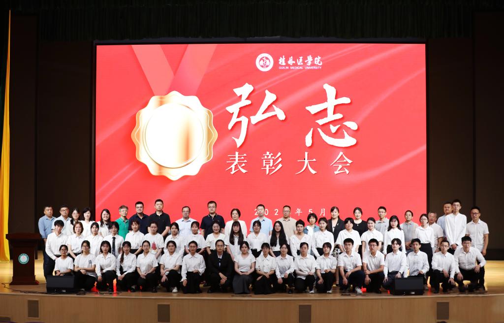 5月22日下午,我校在临桂校区艺术中心举行2024年弘志表彰大会。校党委副书记、院长曾小云,党委常委、副院长陈健出席会议。广西柳药集团股份有限公司旗下子公司广西桂林柳药药业有限公司总经理谢玉平,桂林优利特医学检验有限公司总经理陈宇等企业代表,学校相关部门主要负责人、各二级学院分管学生工作负责人,全体专兼职辅导员,学生代表共计600余人参加大会。大会由陈健主持。