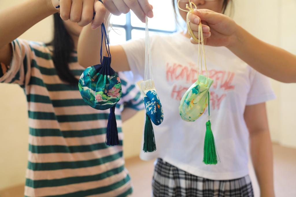“五月五,是端阳。插艾叶,戴香囊。吃粽子,撒白糖。龙舟下水喜洋洋。”跟随主持人回顾了端午节的由来和民俗风情后,师生们化身药师,亲自拾取艾草、薄荷、陈皮、紫苏、丁香等草药,巧手填充,制成驱蚊除秽的香囊,把平安健康的美好祝愿收入囊中。欢声笑语间,不仅体验了节日习俗,更增加了对传统文化的认同。